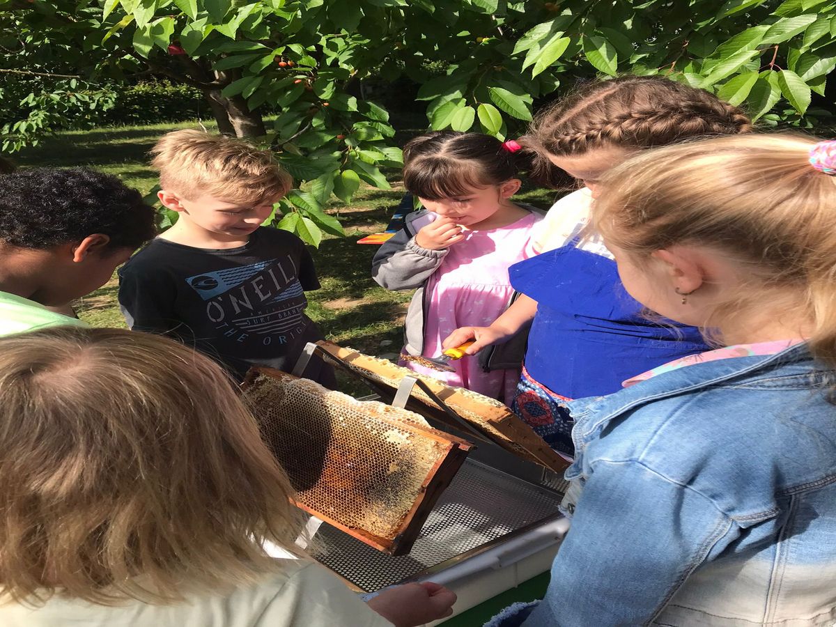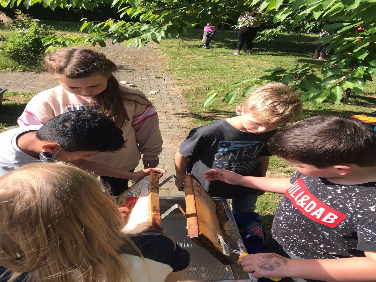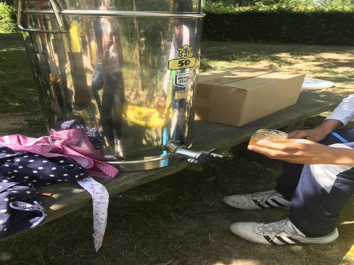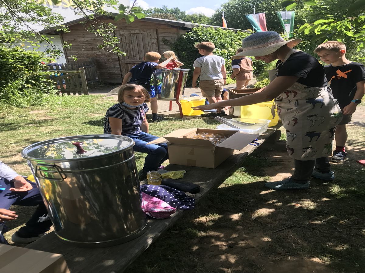 Am Montag kann jedes Kind dann ein Glas mit Honig nach Hause nehmen, heute fehlten leider die Deckel.