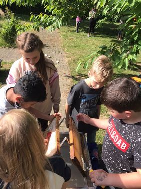 Auch konnten wir zusehen, wie junge Bienen schlüpften. Die Begeisterung war groß.