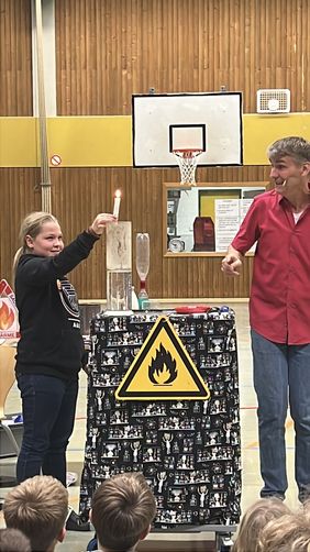 Mit viel Witz, Spannung und einer großen Portion Expertenwissen zeigten die Physikanten, wie faszinierend die Welt des Feuers ist. Funken sprühten, Flammen tanzten, und zahlreiche Experimente ließen die Sälzerkinder immer wieder überrascht auflachen oder beeindruckt staunen. Dabei standen nicht nur spektakuläre Effekte im Mittelpunkt, sondern auch das Verstehen der dahinterliegenden naturwissenschaftlichen Phänomene.
