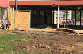 "Alles ist anders. Neben der Schule stehen Bagger und Gitter, Steine und Bauarbeiter. Weil der Eingang kaputt war. Jetzt kriegen wir einen neuen!" (Justus)