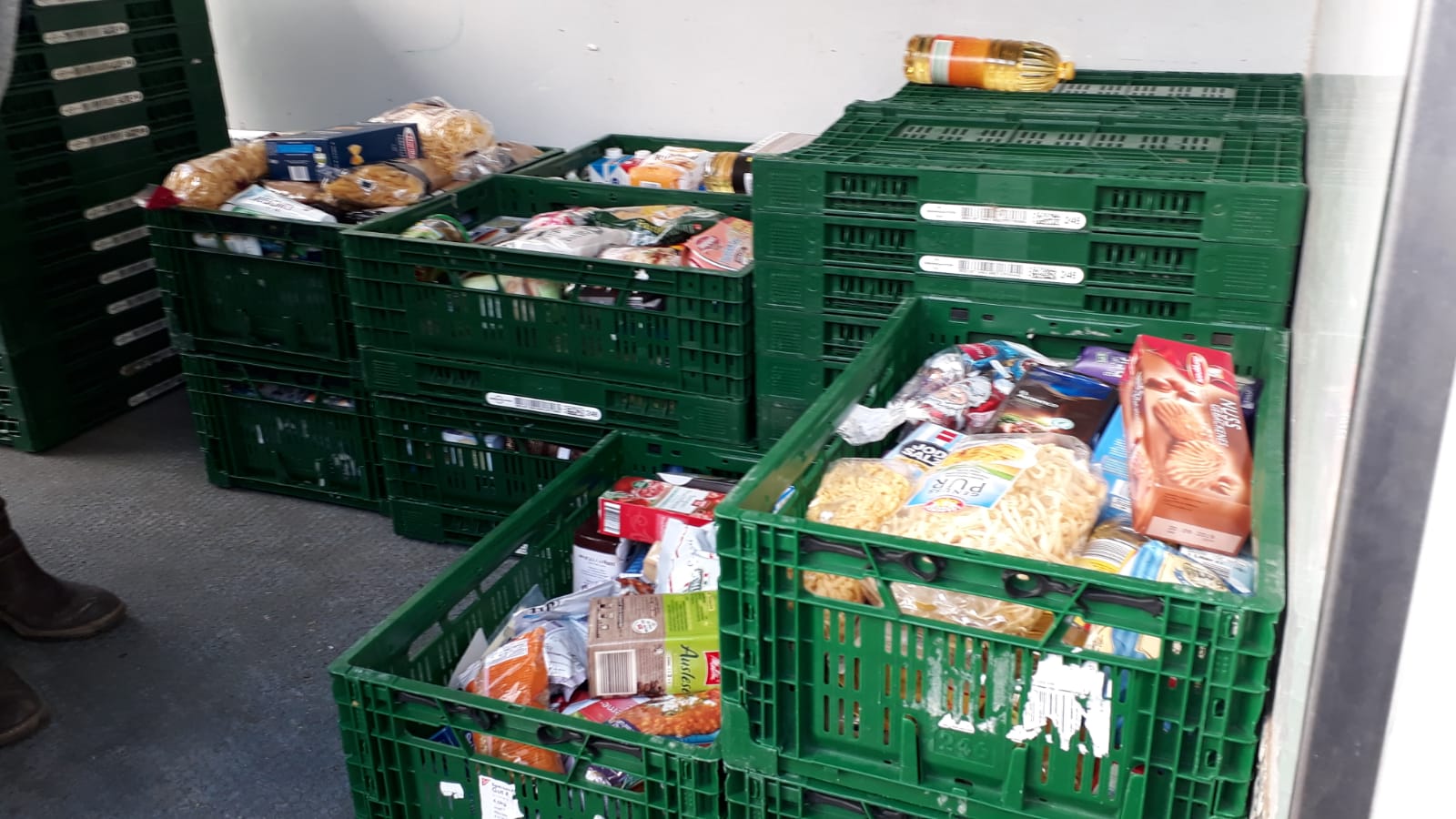 So wurden eine Woche lang im Eingangsbereich der Schule durch unsere Großen eine Menge haltbare Lebensmittel und Hygieneartikel gesammelt.