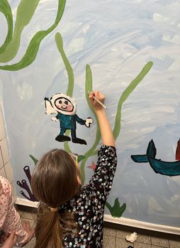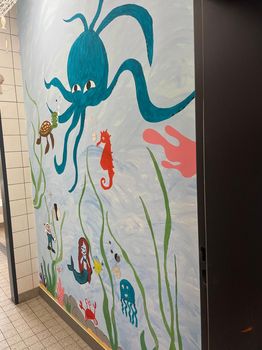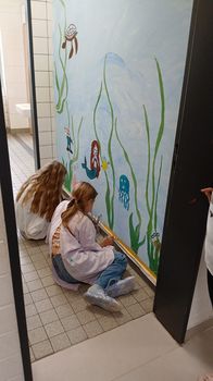 Mit den Kindern gemeinsam haben wir in den Osterferien, neben anderen Aktionen wie zum Beispiel Osterplätzchen backen, Hasen gestalten und Nester basteln, die Toilettenräume der Kinder gestaltet.