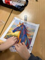Diamond painting ist eine kreative Bastelarbeit, bei der ein schönes Bild mit kleinen funkelnden Steinchen entsteht. Ähnlich wie bei „Malen nach Zahlen“, nur dass anstatt zu malen bunte Steinchen auf eine klebrige Fläche geklebt werden.